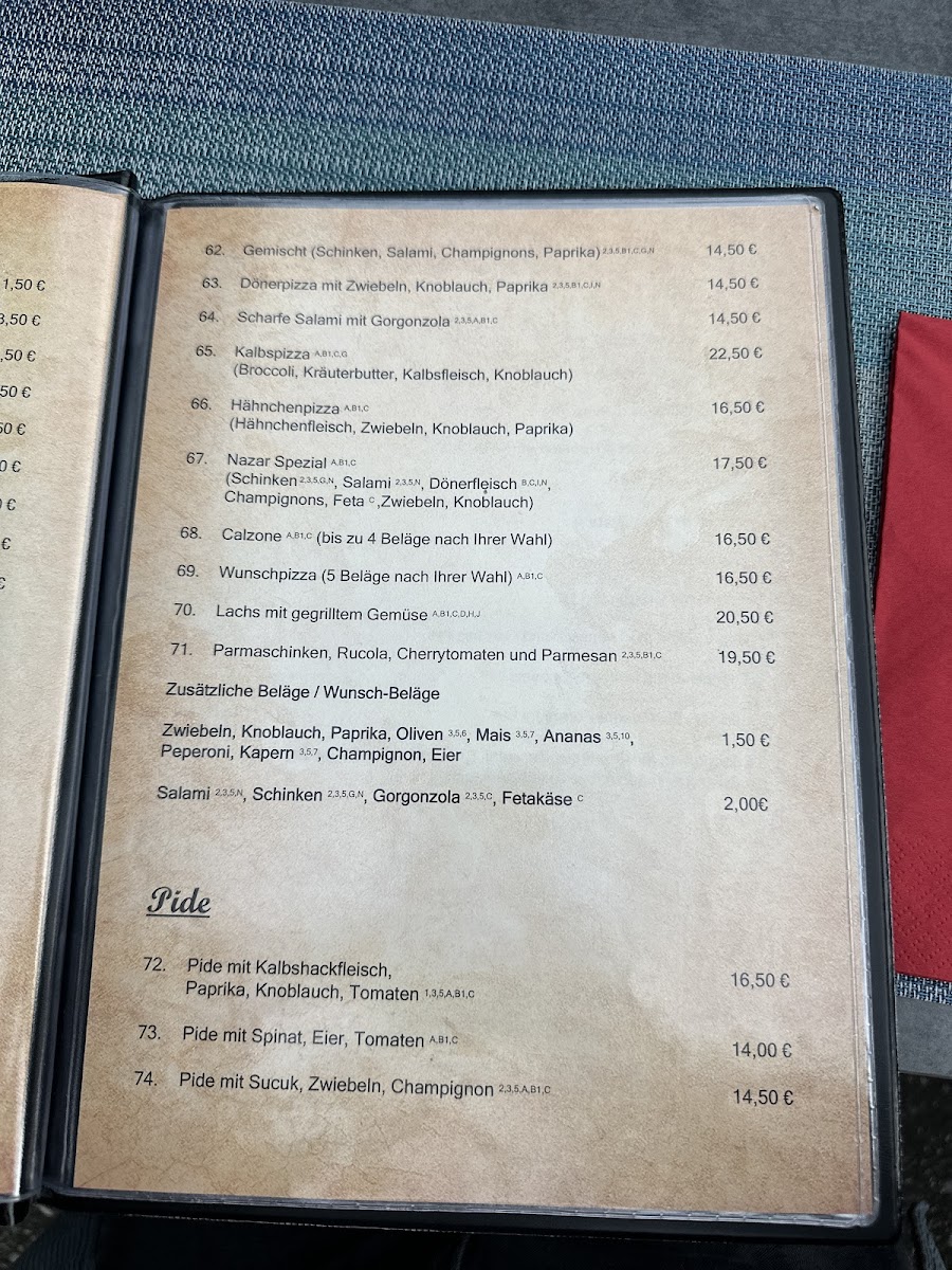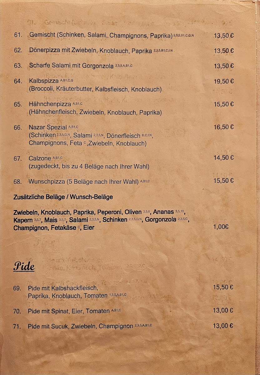 At Nazar Imbiss Grill, you’ll find a delightful mix of flavors, all served with a warm and inviting atmosphere. The menu offers an exciting range of freshly grilled meats, from juicy kebabs to tender skewers, all perfectly seasoned and cooked to perfection. Whether you're craving a quick bite or a hearty meal, there's something for everyone. The selection includes delicious sides like freshly baked bread, crisp salads, and savory dips that pair beautifully with the grilled dishes. The vibrant flavors and authentic taste will transport you straight to the heart of the Mediterranean. Come in, grab a seat, and enjoy a meal that’s made with love and passion for great food. The friendly atmosphere makes it a perfect spot to relax and savor your favorites. Whether you're dining with friends or grabbing lunch on the go, the Nazar Imbiss Grill Menu is sure to satisfy your cravings!